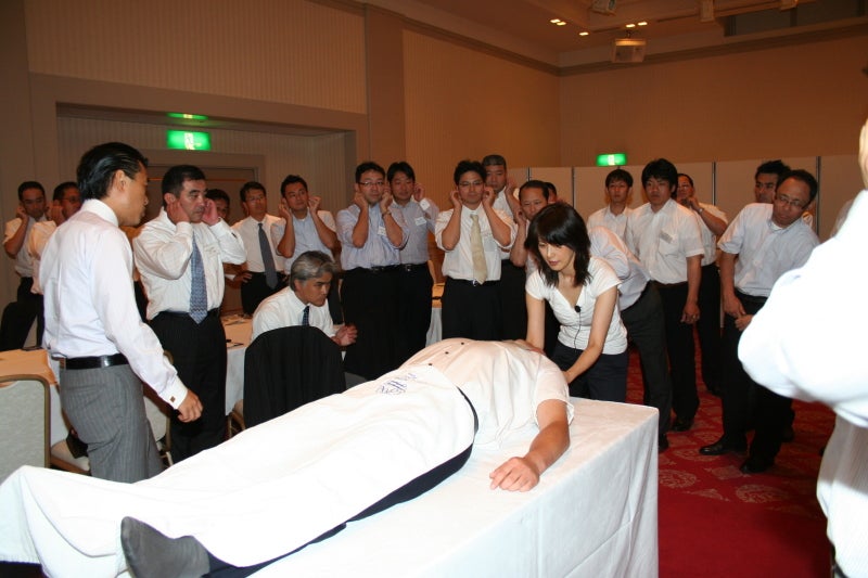 実技をご覧頂ながら、痛みと筋肉についての簡単な説明をしました。