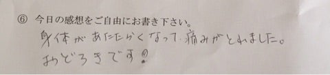 「身体がポカポカしてきました」と